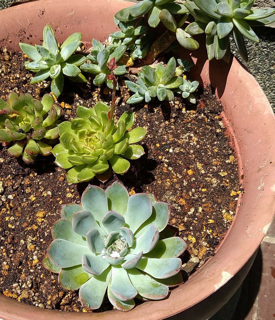 ところで荒野と化していたウチの植木鉢に、ポツンと小さな芽を出していた多肉植物が、今はこんなことになっている。
